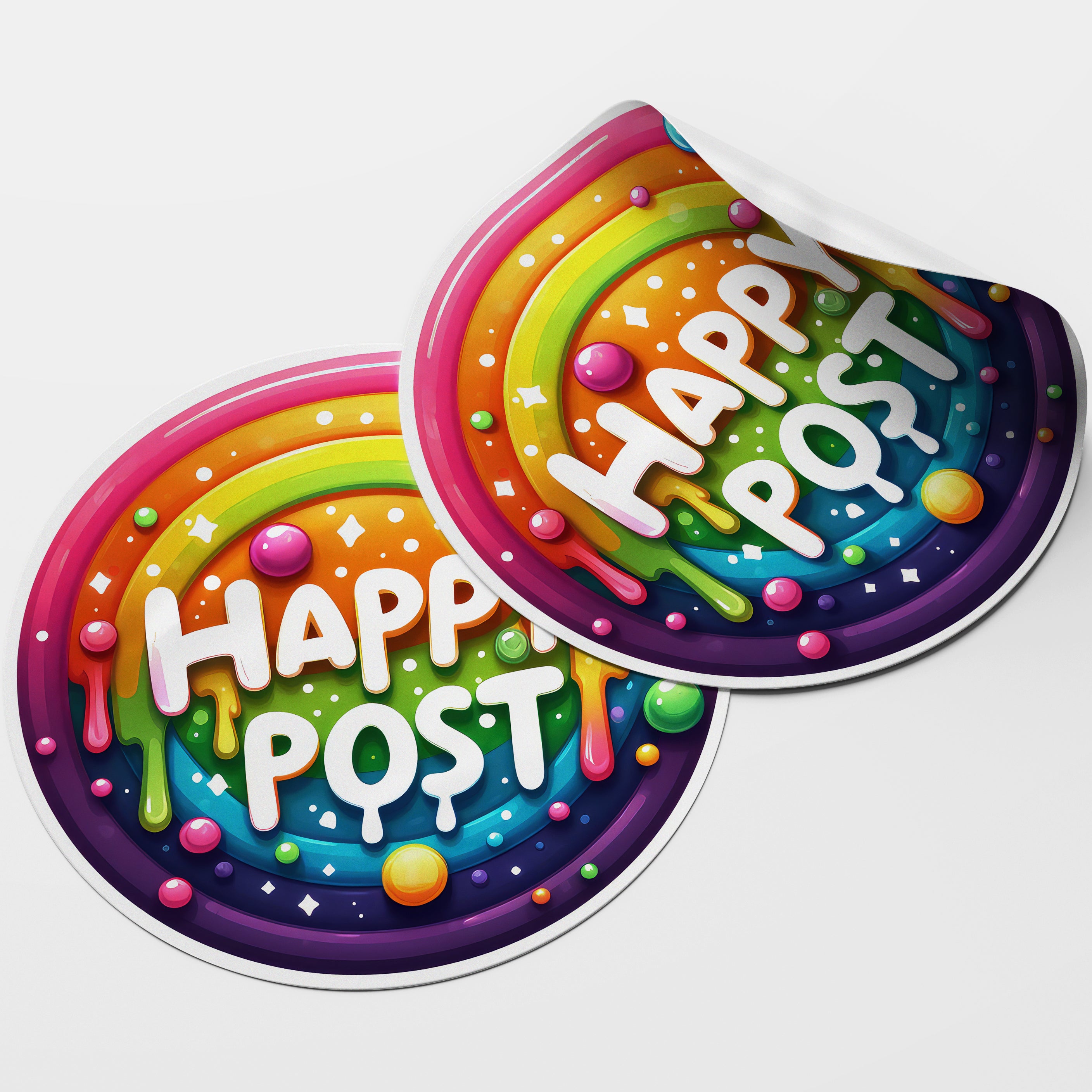 Melted Rainbow Happy Post Circle Stickers