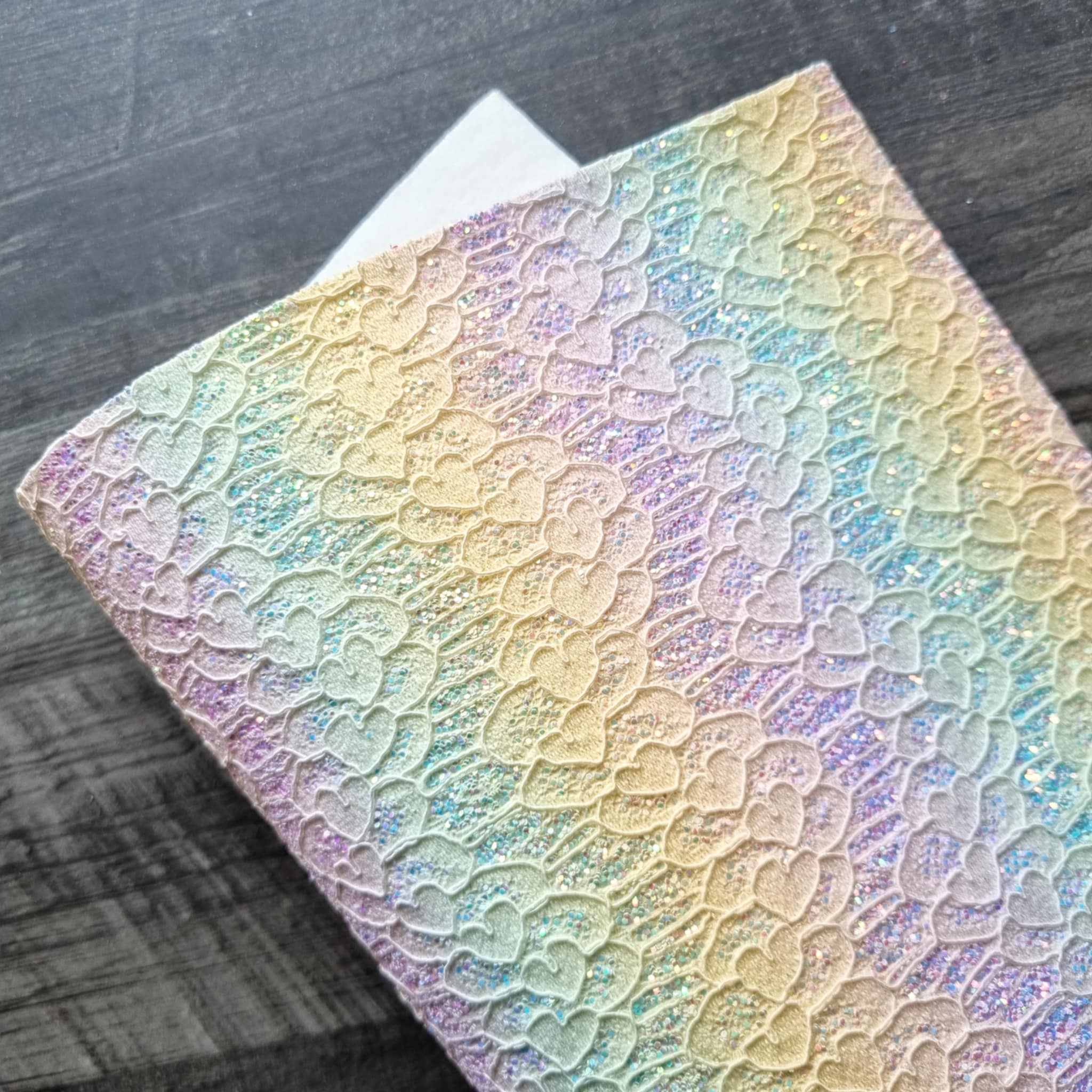Each sheet consists of a lace texture on top of glitter with a soft felt backing.
