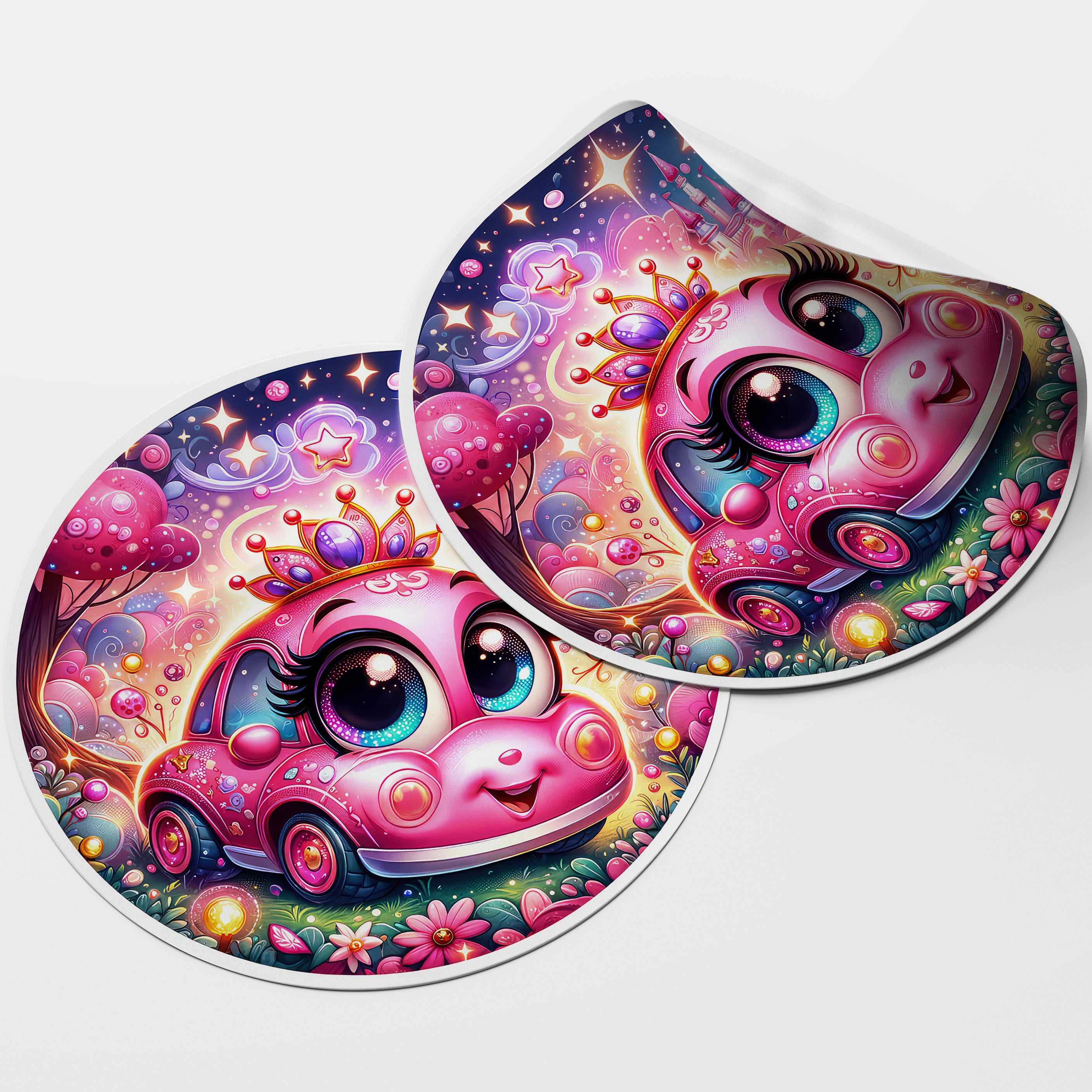 Pink Car 3 Circle Stickers
