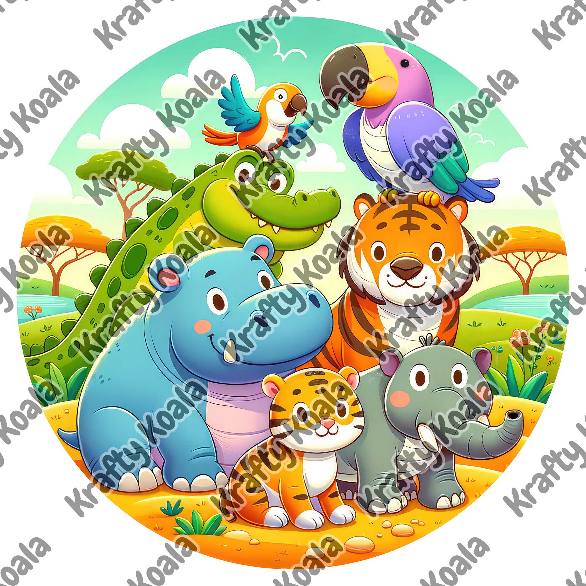 Safari Animals 4 Circle Digital Design